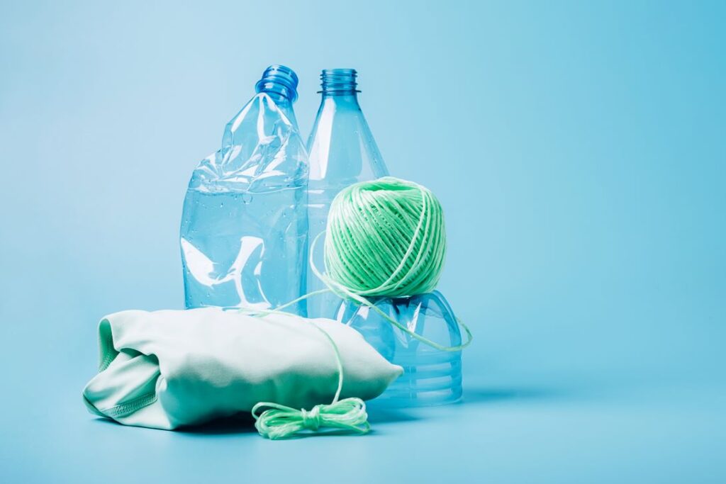 Da garrafa ao tecido: o processo de reciclagem transforma embalagens plásticas descartadas em fibras têxteis sustentáveis, que dão origem às Malhas de Poliéster utilizadas na confecção das roupas que usamos no dia a dia.